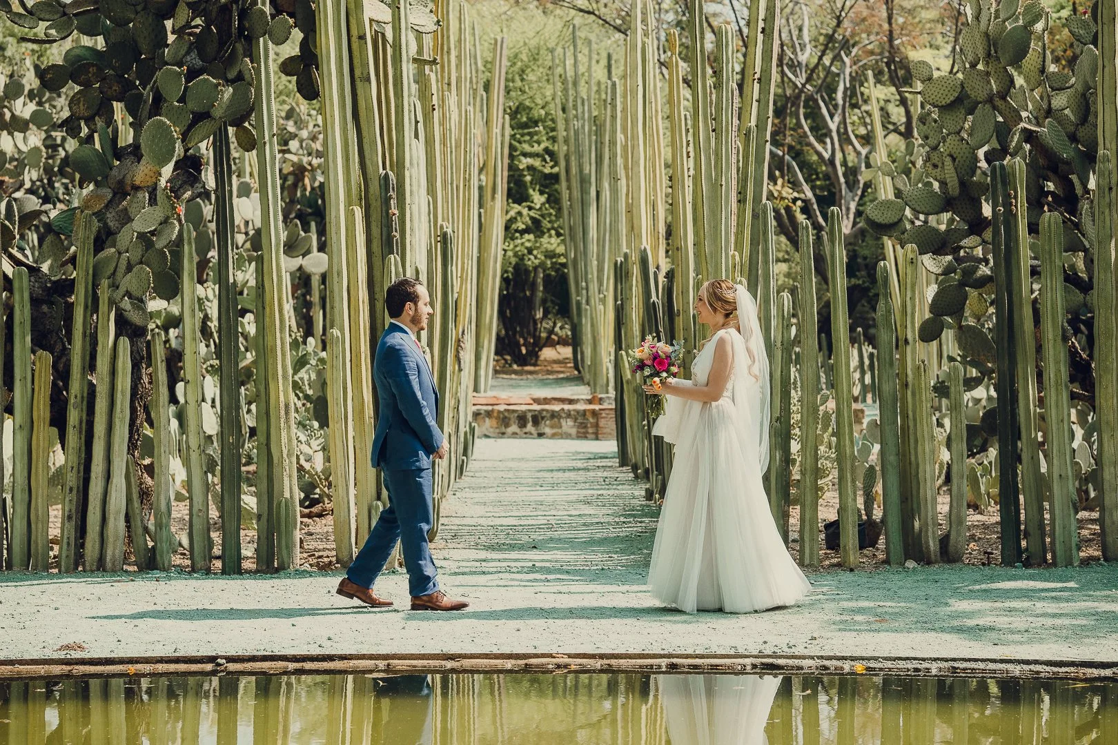 Oaxaca es un destino increíble con rincones mágicos y pintorescos, como el jardín etnobotánico que es un museo vivo que preserva la flora oaxaqueña; Se encuentra a espaldas del templo de Santo Domingo de Guzmán, y en esta ocasión el jardín fue testigo del primer encuentro de Emma y Rafa, que con una sonrisa llena de amor, dieron comienzo a su historia de amor.